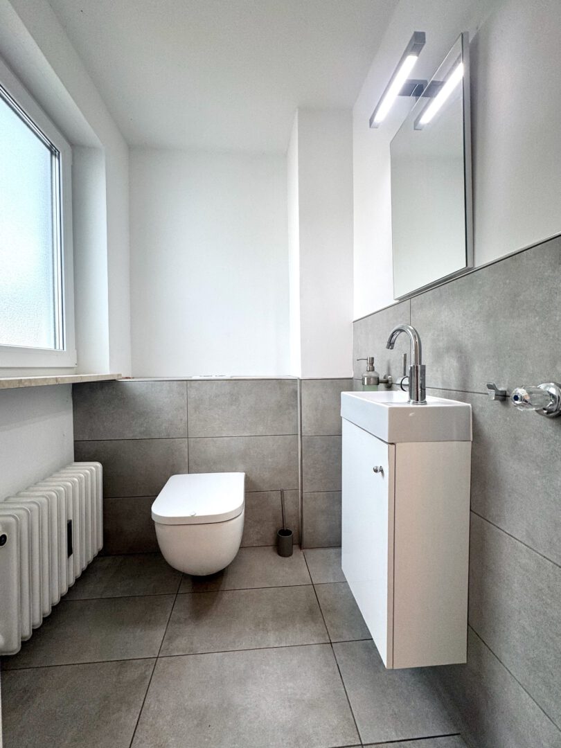 - Wohnen: Großzügiges Wohnzimmer, 2 Schlafzimmer, 1 modernes Bad, 2 separate WCs.