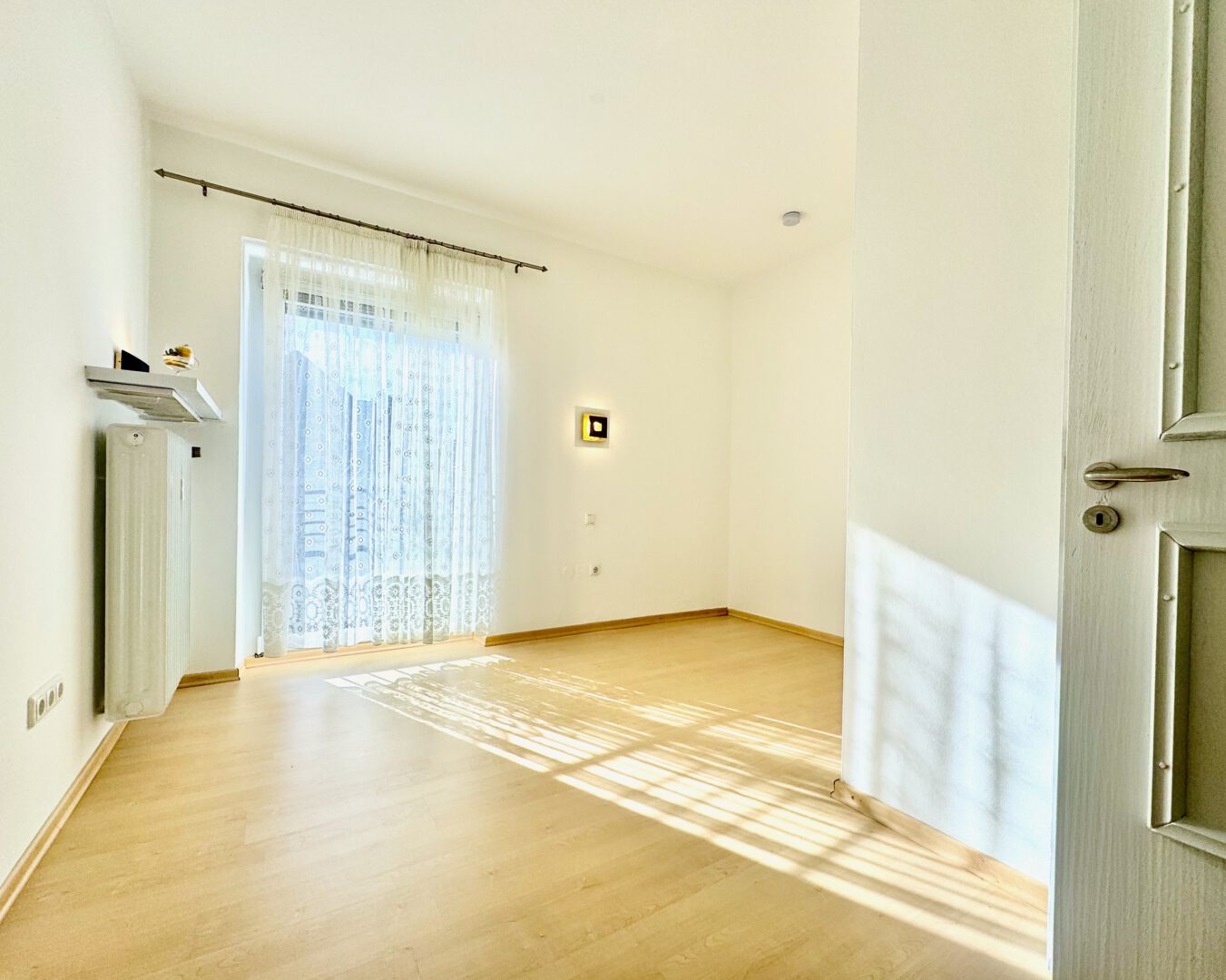 Neben Schlafzimmer, Gästezimmer und geräumigem Abstellraum bietet diese Immobilie einen großzügigen, offenen Wohn-/Essbereich auf ca. 56 m², der dank vieler Fenster von drei Seiten heller nicht sein könnte. Von dort gelangen Sie auch auf den ca. 6 m² großen Balkon gen Süden mit Markise.