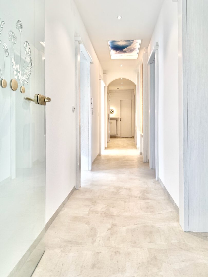 Zu betreten ist diese Wohnung, die sich über das gesamte zweite Obergeschoss erstreckt, durch ein großes, helles Treppenhaus oder komfortabel mit dem Aufzug, der nur mit Schlüssel bis in das Domizil fährt.